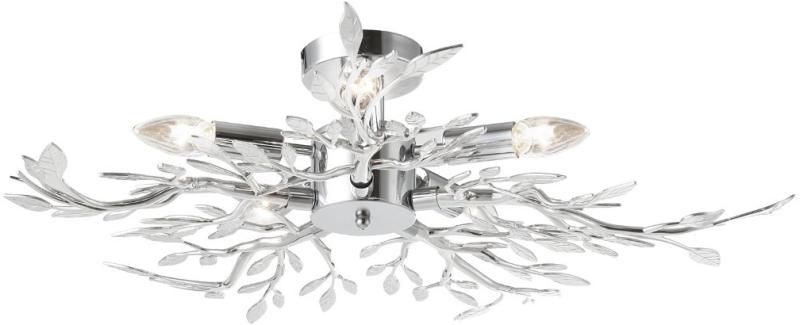 Ez a díszes mennyezeti lámpa krómozott leveles ágakkal elegáns megjelenést kölcsönöz bármely helyiségnek. A díszes mennyezeti lámpa krómozott leveles ágakkal egy igazán különleges darab, amely a modern stílus és a természetes elemek harmonikus ötvözete. A lámpa fém és műanyag anyagokból készült, ami tartósságot és könnyű karbantartást biztosít. Az öt E14 fogla