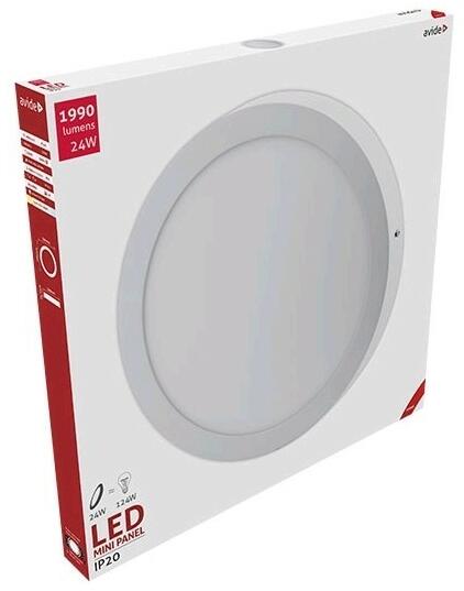 Avide mennyezeti LED lámpa falon kívüli 24W 1990lm 300mm Szabályozható Színhőmérséklet: Nem Garancia: 3 év Szín: Fehér Anyaga: Alumínium Várható élettartam: 25 000 óra Foglalat: nincs Teljesítmény: 24 W Hagyományos watt megfelelőség: 124 W Feszültség: 220-240 V Működési hőmérséklet: -20 - +40°C IP Védettség: IP20 Átmérő: 300 mm Magasság: 31,5 mm Színhőmérsé
