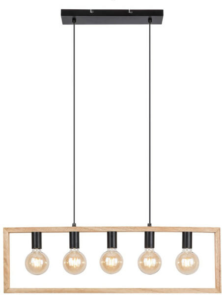 Függeszték E27 foglalat, Jellemző anyag: fém, Jellemző szín: fekete, nem tartalmaz fényforrást, 230V, Méret: 1100mm x 860mm (Hosszúság x Szélesség x Magasság), 2294 Az Indigo ötös függesztéket a skandináv stílus kedvelőinek ajánljuk, elsősorban a nappaliba vagy a hálószobába. A fémből készült fekete lámpafejek nagyméretű fabúrához csatlakoznak, amely valójában