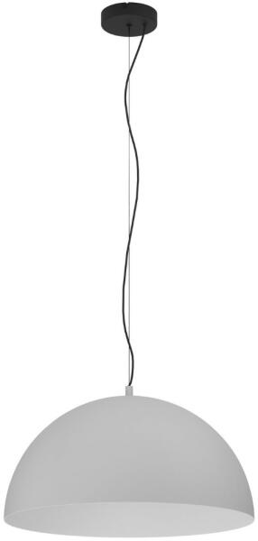 Fekete színű fém vázas függeszték szürke-fehér színű fém búrával, E27-es foglalattal.