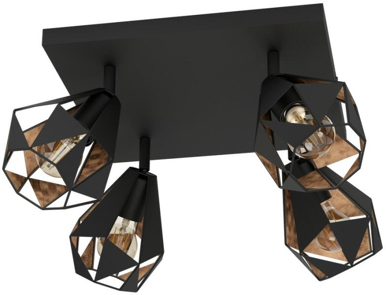 A CARLTON 7 mennyezeti lámpa fekete fémből készült, és négy állítható gyémánt alakú búrával rendelkezik, antik réz belső felülettel. A búrák geometriai nyílásai lenyűgöző fény- és árnyékjátékot hoznak létre a mennyezeten. A mennyezeti lámpa kiegészíti a m. .