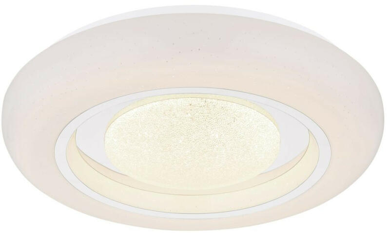 Mennyezeti Lámpa 18W, LED, 710lm, Jellemző anyag: fém, Jellemző szín: fehér, 230V, Méret: 390mm x 80mm (átmérő x magasság), 41369-18 Mennyezeti űfém fehér, akril opál, króm gyűrű, szabályozható, sok fokozatú fali kapcsoló, színváltás, színrögzítés, RGB szivárvány effektus, memória funkció, távirányító, ø: 390mm , H: 80mm, LED 18W 230V, 71-710lm kimenet, CCT 27