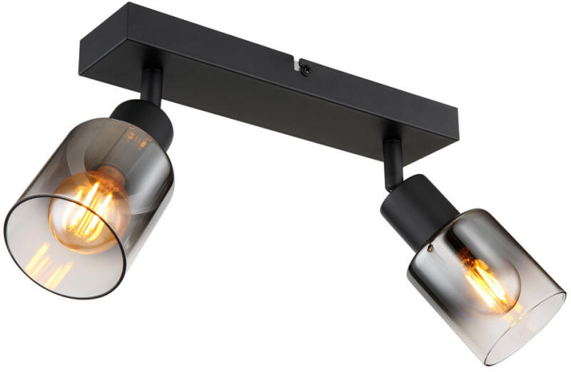 Matt fekete színű fém spot lámpa színátmenetes füstszínű üveg búrával.