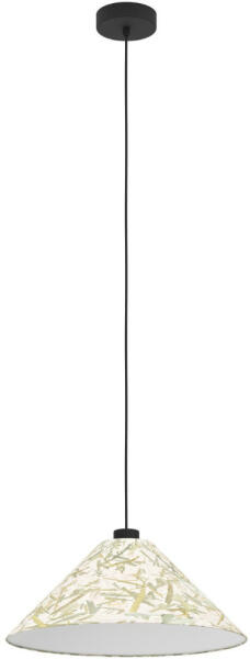 Keleti stílusú, fekete színű fém vázas függeszték fehér-zöld színű textil búrával, E27-es foglalattal.