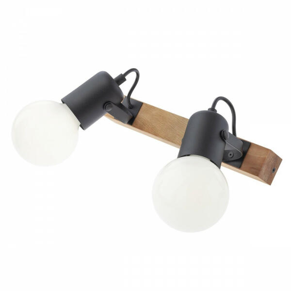 Matt fekete színű fém vázas spot lámpa bükkfa betéttel, mozgatható E27-es foglalatokkal. Fényforrást nem tartalmaz.