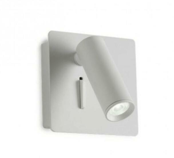 Matt fehér színre festett fém falikar állítható fejjel, beépített LED fényforrással és a lámpatesten kapcsolóval.