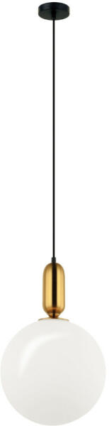 Modern stílusú, átlátszó üvegbúrás függeszték arany színű foglalattal, fekete PVC borítású vezetékkel. Magasság adatnál a maximális belógást adtuk meg, mely a vezeték rövidítésével csökkenthető. Dekor izzót ajánlunk hozzá, mely kiemeli a lámpa hangulatát. LED fényforrással működtethető, melyet a csomagolás nem tartalmaz. Specifikációk:Gyártó: Nova Luce Ci