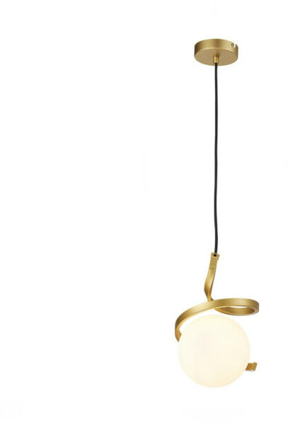Rábalux 72126 Sarabi Függeszték arany LED 7 IP20 A modern Sarabi függesztéket elsősorban azoknak ajánljuk, akik elegáns és látványos modellt keresnek a nappalijukba. Ez a gyönyörű, ízléses lámpa arany-fehér színkombinációjával finom ékszerként tündökölhet otthonában. A fémből készült Sarabi kanyargós aranyszínű lámpaeleméhez fehér, gömb alakú üvegbúra kapc