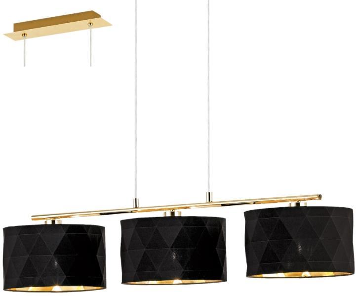 39225 EGLO Dolorita fekete arany textil mennyezeti függeszték. A világitótestbe a E27-es fényforrás nem tartozék. Termék előnyei Egyedi design Könnyű felszerelni Hosszú élettartam Energiahatékonyság Felhasználás Hotelek Bárok Nappali Éttermek konferenciatermek Műszaki adatok Általános adatok Foglalat: E27 Izzók száma: 3 (max 60W-ig) Fényforrás: Nem tartozék Funkció: tex