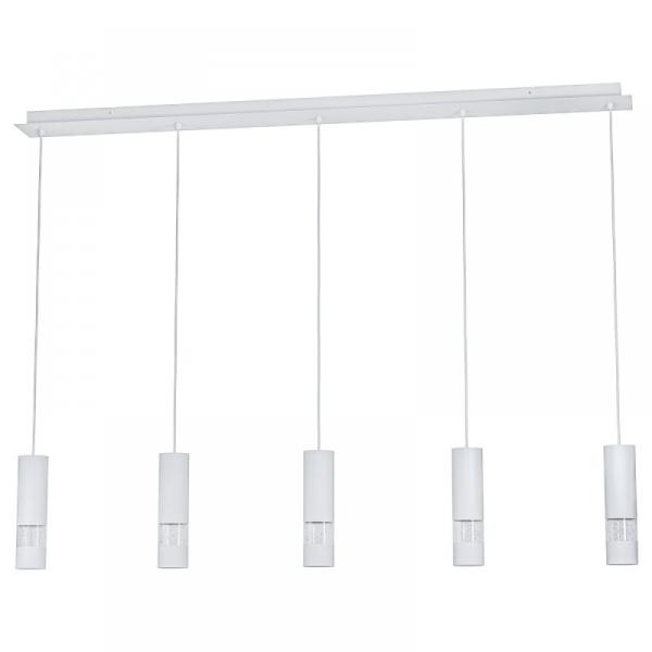 A BERNABETA LED függőlámpa öt hengeres függővel és egy fehér fém mennyezeti konzollal rendelkezik. Mindegyik medál alsó részében egy átlátszó műanyag elem található légbuborékos részletekkel, amely jellegzetes fényhatást kelt a helyiségben. A függőlámpa tökéletes befejezése a modern és minimalista belső tereknek, egyedi világítási megoldást nyújtva akár a nap