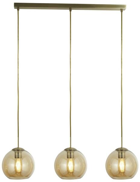 Műszaki adatok: E27 3x 40wattFényforrás tartozék: nemAnyag: fém, üvegSzín: antik sárgaréz, borostyán Teljes belógás: 150cmMagasság: 20cmSzélesség: 20cmHosszúság: 70cm Egyéb információk: Dimmelhető: Használható fényerő szabályzóval.