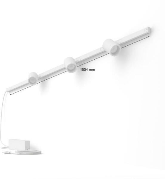 Korlátlan lehetőségek Ez a fehér színű sínes lámpaszerelvény-készlet három hengeres spotlámpát, egy 1 méteres sínt, egy 0,5 méteres sínt, egy egyenes csatlakozót és egy tápegységet tartalmaz, amely az egyik sín végén helyezkedik el, és csatlakozódugóval csatlakoztatható az elektromos hálózatra. Rugalmas kialakítás Állítsa be a spotlámpák irányát. Eressze le va