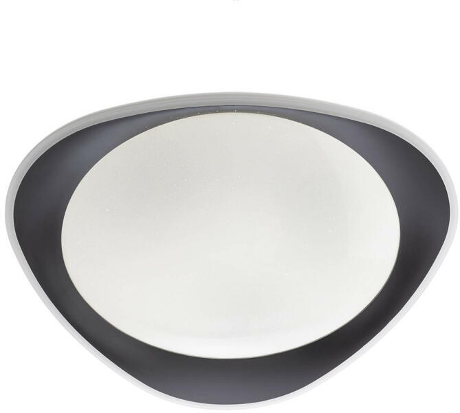 Fehér színű fém vázas mennyezeti lámpa fekete színű, háromszög formájú műanyag kerettel, csillagos égbolt effktes polikarbonát búrával, 24W természetes fehér fényű beépített LED fényforrással.