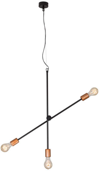 Loft stílusú, festett fémből készült függesztett lámpa. Halogén, energiatakarékos és LED fényforrással is üzemeltethető, amely nem tartozéka a csomagolásnak. A vezeték rövidítésével a függesztett lámpa belógása állítható. Specifikációk:Gyártó: Nowodvorski Cikkszám:: TL-6268 Foglalat: 3 x E27 Méret (ma x sz x mé): 1200 x 730 x 0 mm IP-védettség: IP20 Tápfeszü