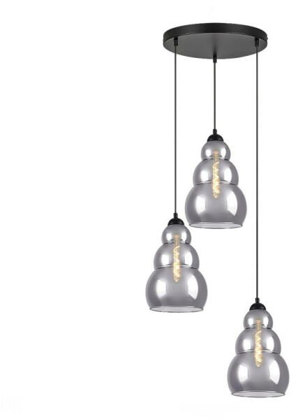 A Salvatore hármas függeszték a Rábalux saját tervezésű modellje, amely szemet gyönyörködtető dizájnjával és elegáns színével számos modern nappaliba jó választás lehet. A fémből készült fekete színű lámpát színezett üvegbúrák, valamint textilkábelek és nagyméretű, kerek, fekete dísztalp egészíti ki. A három lámpafej eltérő magasságban függ. A lefelé