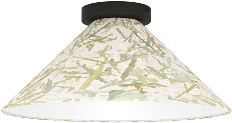 Keleti stílusú, fekete színű fém vázas kerek mennyezeti lámpa fehér-zöld színű textil búrával, E27-es foglalattal.