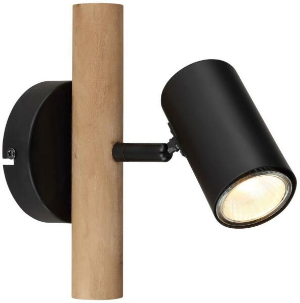 Spotlámpa 5W, GU10 foglalat, Jellemző anyag: fa, Jellemző szín: sötétbarna, nem tartalmaz fényforrást, 230V, Méret: 100mm x 200mm (Hosszúság x Szélesség x Magasság), 57913-1 Spotlámpa fa sötétbarna, fém fekete matt, fém fekete matt, SZxH: 100x200mm, AL: 180mm, fényforrás nélkül szállítva 1x GU10 LED 5W 230V