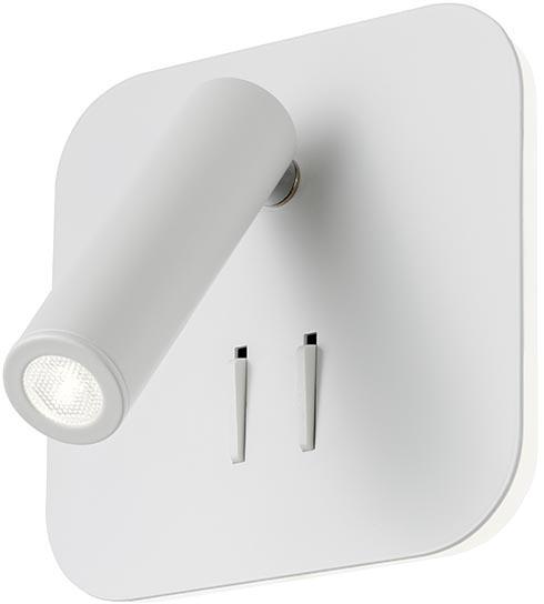 Matt fehér színre festett alumínium olvasókaros fali lámpa beépített LED fényforrással, a lámpatesten kapcsolóval.