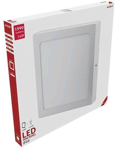 Avide LED lámpa mennyezeti, négyzet falon kívüli 24W Szabályozható Színhőmérséklet: Nem Garancia: 3 év Szín: Fehér Anyaga: Alumínium Várható élettartam: 25 000 óra Foglalat: nincs Teljesítmény: 24 W Hagyományos watt megfelelőség: 124 W Feszültség: 220-240 V Működési hőmérséklet: -20 - +40°C IP Védettség: IP20 Mérete:: 300 x 300 mm Magasság: 31,5 mm Színhőmérs