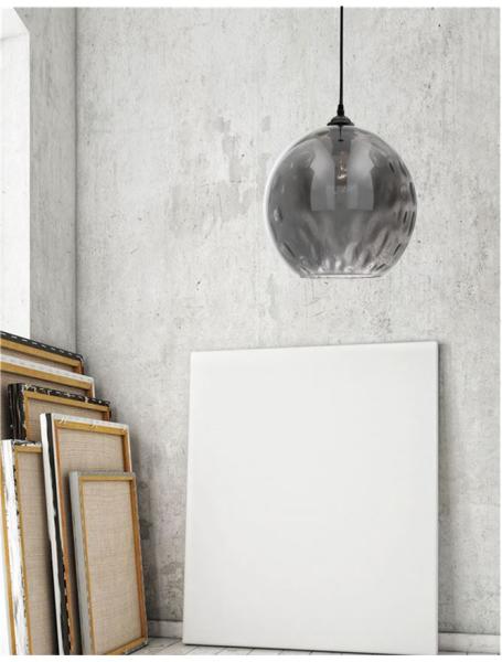 Gömb alakú, design függeszték. A lámpa füstszínű üvegbúrája belülről strukturált, mely felkapcsolt állapotban válik láthatóvá. A magasság adatánál a maximális belógást adtuk meg, mely a huzal szabályozásával rövidíthető. A csomagolás a fényforrást nem tartalmazza. Specifikációk:Gyártó: Nova Luce Cikkszám:: NL-8436423 Foglalat: 1 x E27 Méret (ma x sz x mé):