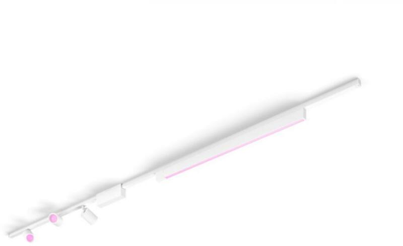Korlátlan lehetőségek Ez a fehér mennyezeti sínes lámpaszerelvény három hengeres spotlámpát, egy lineáris fényrudat, egy 1 méteres sínt, egy 1,5 méteres sínt és egy tápegységet tartalmaz, amely a két sín között helyezkedik el. Rugalmas kialakítás Állítsa be a spotlámpák irányát. Eressze le vagy emelje magasabbra a függőlámpákat. Forgassa el a színátmenetes fén