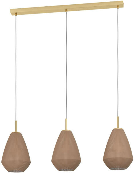 Sárgaréz színű fém vázas függeszték homok színű üveg búrával, E27-es foglalattal.