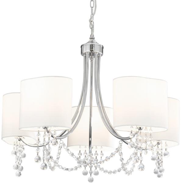 Üde, modern, glamourozó függeszték, kristály gyöngy díszítésekkel, fehér szövet lámpaernyőkkel és króm karokkal, gyertya alakú izzókkal is használhatod. Magasság: 44 cmÁtmérő: 64 cmHossz: max. 103 cmTeljesítmény: 5 x 60 WFoglalat: E14Besorolási osztály: 1 (földelt)