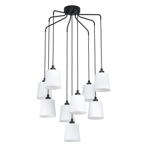 Foglalat: E27, Teljesítmény / Fogyasztás: 9x40W, Termék típus: Csillár, Szín: Fehér, Fekete, Magasság: 1500mm, Szállítási tartalom: Izzó nélkül, Anyaga: Acél, Textil, Átmérő: 780mm, Termékcsalád: BERNABETTA, Brand: Eglo