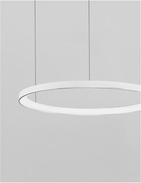 Modern stílusú, matt fehér színű függeszték a Nova Luce-től. A lámpa színhőmérséklete 3000 Kelvin, azaz meleg fehér beépített LED fényforrást tartalmaz, mely nem cserélhető. Magasság adatnál a maximális belógást adtuk meg, mely a vezeték rövidítésével csökkenthető. Fali kapcsolóval fényereje szabályozható. Specifikációk:Gyártó: Nova Luce Cikkszám:: NL-98536