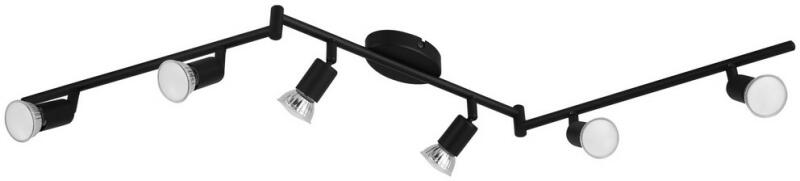 BUZZ-LED fali és mennyezeti spotlámpa fekete fémből készült, és két karján hat állítható spotlámpa található. A karok helyzete testreszabható a lámpa mennyezetre rögzítésekor. A klasszikus mennyezeti lámpa forgatható fejeivel kiegészíti a modern belsőépít. .