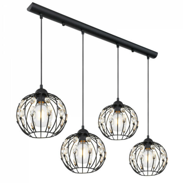 Függeszték fém fekete K9 tisztaságú kristály dekorral, textil kábelen lógatva. HxSZxM:800x200x1200, exkl. 4xE27 60W 230V