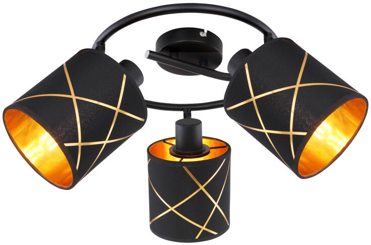 Műszaki adatok: E27 3x 25 Watt Foglalat típusa: E27 Fényforrást tartalmaz: nem Váz anyaga, színe: fém, matt fekete Búra anyaga, színe: textil, fekete Átmérő: 280 mm Magasság: 182 mm Súly: 0,93 kg IP védettség: IP20 Üzemi feszültség: 230 Volt EAN kód: 9007371408801