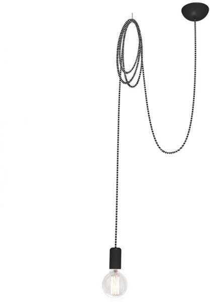 "Spider függeszték búra nélküli, modern fekete színű lámpa. A mennyezeti konzol méretei: 12x5 cm. Állítható magasságú függeszték. Magasságánál a maximális belógást adtuk meg. A vezeték textil borítású. A csomagolás a fényforrást nem tartalmazza. Milyen a lámpa fénye?Ez a függesztett lámpa a választott fényforrástól függően alkalmas fő világításnak amit na