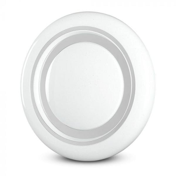 V-TAC Mennyezeti DESIGN, 60 Wattos CCT LED lámpa, Dimmelhető, távirányítóval A mennyezetre szerelhető LED lámpatest színhőmérséklete változtatható (CCT), teljesítménye 60 Watt, valamint burájának felülete csillogó hatású. A lámpatest különlegessége, hogy a fehér színű bura felületén apró "lyukak" találhatóak elszórtan, így különböző szögből nézve csillog