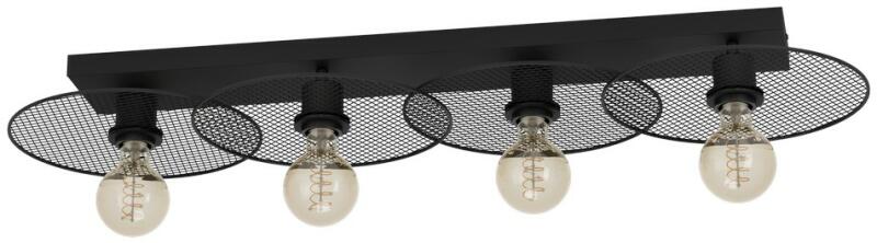 Az IKESTON mennyezeti lámpa téglalap alakú fekete fémtesttel rendelkezik, négy kerek háló elemmel. A dizájn modern ipari megjelenést kölcsönöznek a terméknek. A mennyezeti lámpa szinte minden belsőépítészeti stílust kiegészít, jellegzetes világítási megol. .