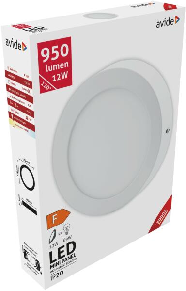 Avide mennyezeti LED lámpa falon kívüli 12W 940lm 170mm Szabályozható Színhőmérséklet: Nem Garancia:3 év Szín: Fehér Anyaga: Alumínium Várható élettartam: 25 000 óra Foglalat: nincs Teljesítmény: 12 W Hagyományos watt megfelelőség: 68 W Feszültség: 220-240 V Működési hőmérséklet: -20 - +40°C IP Védettség: IP20 Átmérő: 170 mm Magasság: 31,5 mm Színhőmérsékle
