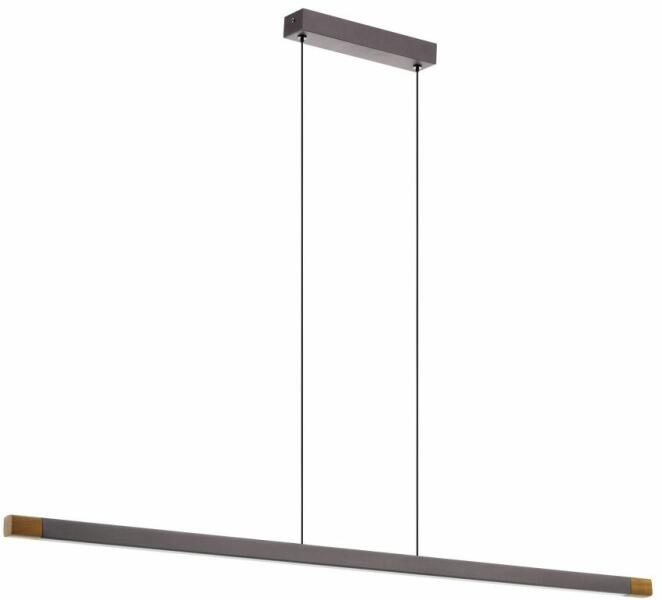 A Lisciana függő fényében egy felfüggesztett alumíniumprofil található, sötétbarna, gumifa részletekkel, dió kivitelben. A fény modern megjelenését a fekete textil kábelek és a fém lombkorona egészíti ki. A matt fehér műanyag fénypanel mögött lévő integrált LED -ek tompíthatók a falon lévő koordináló forgó tompítással, és kellemes meleg, fehér fényt eredmén
