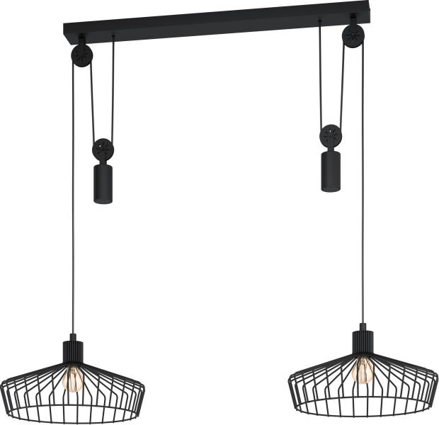 EGLO 43438 WINKWORTH Vintage függeszték, E27-es foglalattal, MAX 2X40W teljesítménnyel, fekete / acél lámpatest, kapcsoló nélkül