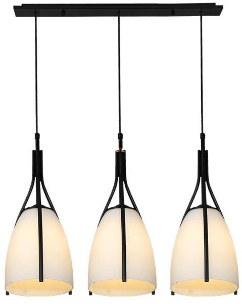 Matt fekete színű fém vázas függeszték opál üveg búrával.