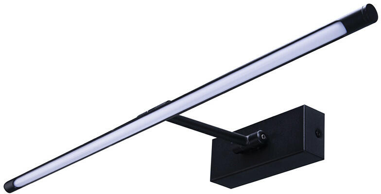 Modern stílusú, két pontban is állítható képmegvilágító. Meleg fehér fényű beépített LED fényforrást tartalmaz, mely nem cserélhető. Színvisszaadási indexe 90. Specifikációk:Gyártó: AZzardo Cikkszám:: AZ-4262 Foglalat: 1 x Beépített LED Méret (ma x sz x mé): 55 x 480 x 170 mm IP-védettség: IP20 Tulajdonságok: Csomagolás tartalmazza az izzót Állítható Színhőm