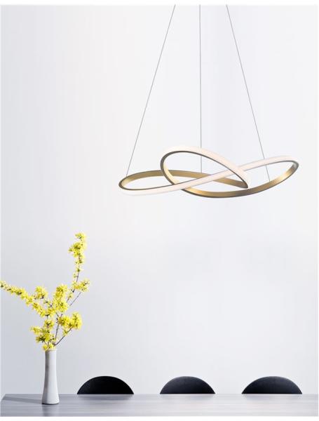 Antik bronz színű, design stílusú függeszték. A lámpa színhőfoka 3000K, azaz meleg fehér fényű, beépített fényforrást tartalmaz, mely nem cserélhető. Maximális belógása 1500mm, mely a huzal szabályozásával rövidíthető. Specifikációk:Gyártó: Nova Luce Cikkszám:: NL-1701101002 Foglalat: 1 x Beépített LED Méret (ma x sz x mé): 1500 x 720 x 0 mm IP-védettség: IP20