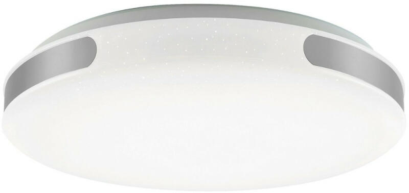 Rábalux 2298 Taylor Mennyezeti lámpa Modern megjelenésű mennyezeti lámpa távirányítóval állítható fényerejű és színhőmérsékletű, beépített energiatakarékos LED izzóval. Fehér és ezüst színű, fémből és alumíniumból készített szerkezet 50 centiméter átmérővel, csillogó hatást keltő, műanyag lámpabúrával. IP20-as védettségű. A távirányítóval vezé