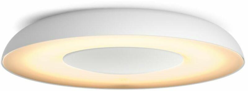 Philips Still Hue mennyezeti lámpa fehér Philips Still Hue mennyezeti lámpa fehér: A kerek, egyedi formájú Philips Hue White ambiance Still fehér mennyezeti lámpa a meleg és hideg fehér fény ezer árnyalatát sugározza a nap bármely szakában. A fények azonnal kapcsolhatók és állíthatók a tartozék Hue fényerő-szabályozó kapcsolóval vagy Bluetooth segítségével. A Hue Bri
