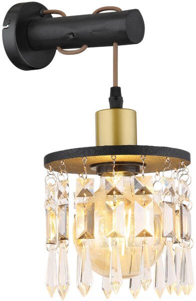 Fali lámpa 40W, E27 foglalat, Jellemző anyag: fém, Jellemző szín: sárgaréz Matt Matt, nem tartalmaz fényforrást, 230V, Méret: 150mm x 370mm (Hosszúság x Szélesség x Magasság), 15533W Fali lámpa sárgaréz matt, fekete fa, üvegkristályok, kábeltextil barna, fényirány: lefelé, SZxM: 150x370mm, AL: 250mm, fényforrás nélkül szállítva 1x E27 40W 230V