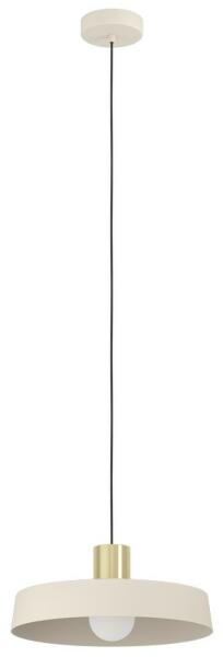 Homok színű fém vázas függeszték homok-sárgaréz színű fém búrával, E27-es foglalattal.