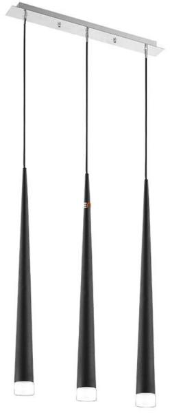 Design függeszték króm színű fém vázzal, feketére festett búrával, a végén fagyott üveg dekorral.