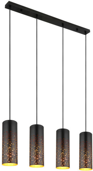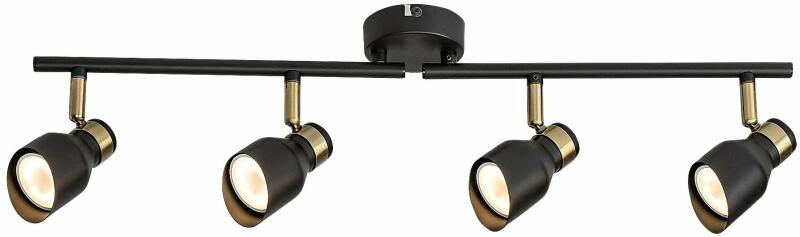 Rábalux 73050 Lilou Beltéri lámpa Mennyezeti lámpa arany, matt fekete GU10 4x MAX 25, IP20 A modern stílusú Lilou négyes mennyezeti lámpa egyaránt jó választás lehet a nappaliba, a hálószobába vagy a dolgozószobába. A teljes egészében fémből készült, matt fekete modellt aranyszínű elemek egészítik ki, ami elegáns megjelenést kölcsönöz a lámpának. A Lilou kisméret