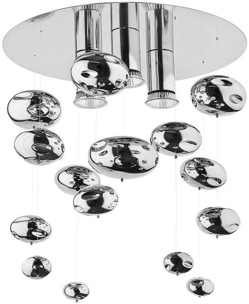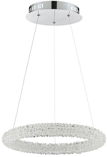 Csillogó függeszték króm színű fém vázzal, kristály dekorral és beépített LED fényforrással.