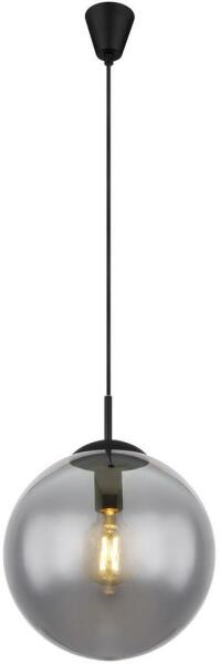 Függeszték fém matt fekete, füstszínű üveg, fekete PVC kábel, ø: 300mm, H: 1200mm, fényforrás nélkül szállítva 1x E27 60W 230V