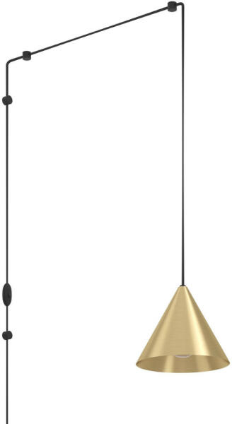 Sárgaréz színű fém vázas függeszték sárgaréz színű fém búrával, E27-es foglalattal. A lámpa egyéb tulajdonsága(i): vezetékre szerelt kapcsoló.